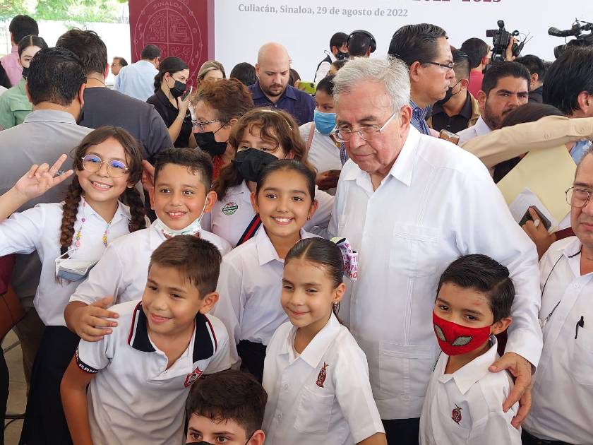 “Entonces se tardó un poquito la licitación, no tenemos el zapato ahorita, pero lo vamos a tener en unos cuantos días, a ver que me informen aquí, Javier Gaxiola por favor, y le damos la nota, para que sepan los padres cuando vamos a empezar a entregar los zapatos”, comentó.