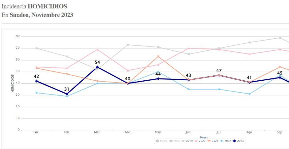 CULIACÁN._ Noviembre de 2023 finalizó como el periodo con menor número de homicidios en Sinaloa durante los últimos cinco años, con 29 casos, de acuerdo con datos recogidos por el portal Semáforo Delictivo.