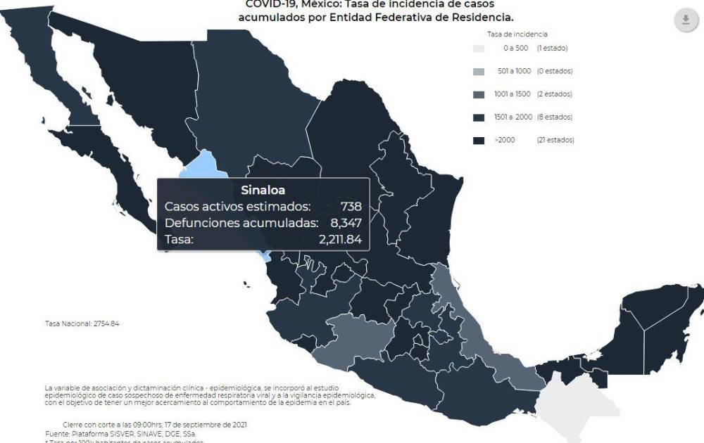 Sinaloa desciende a 764 casos activos de Covid simultáneos y suma 12 decesos: Salud