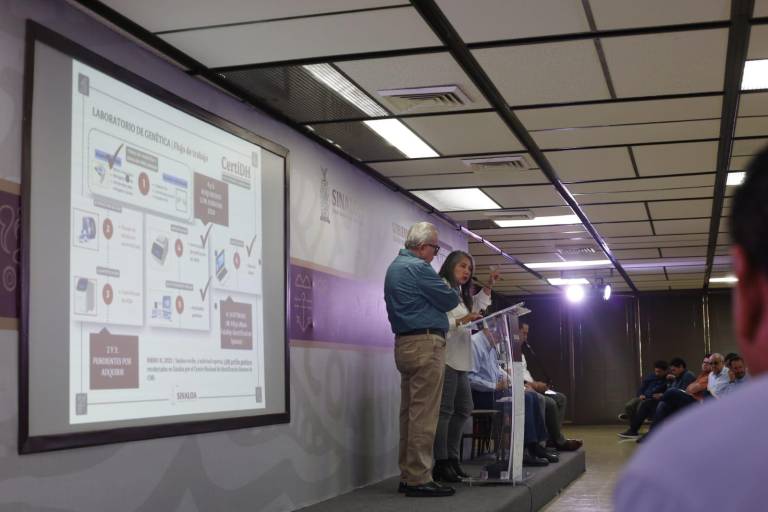 En la conferencia de prensa La Semanera del Gobernador Rubén Rocha Moya, la titular de la Subsecretaría de Derechos Humanos Patricia Figueroa Sauceda, presentó un informe sobre las labores de identificación humana para combatir el tema de la desaparición en el estado.
