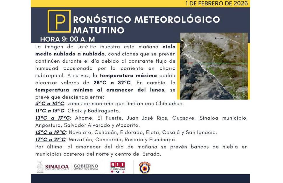 Sinaloa inicia febrero con cielo nublado y temperaturas frescas