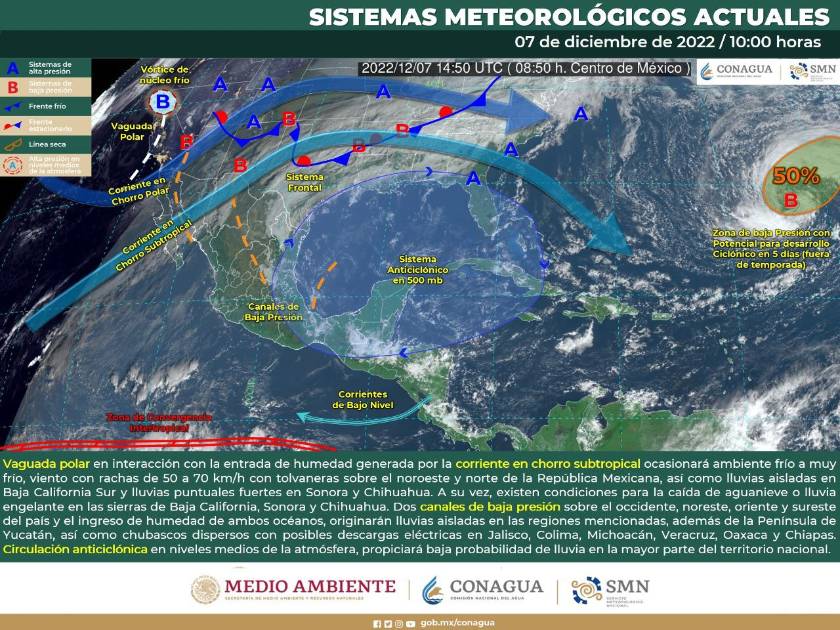 El informe señala que por la tarde habrá un ambiente templado a cálido, siendo caluroso en Sinaloa con temperaturas máximas que oscilarán entre los 35 a 40 grados.