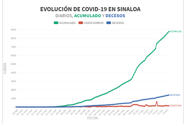 Guasave, el día de hoy, fue por cuarto día consecutivo el municipio con el mayor número de nuevos contagios con 49. En los últimos cinco días, se han reportado 215 nuevos casos.