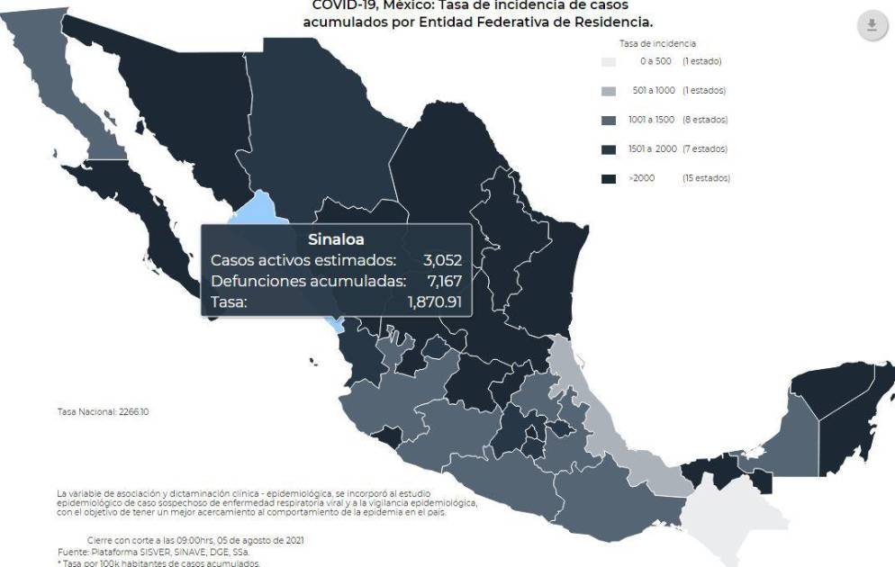 Sinaloa supera los 60 mil infectados de Covid en 525 días de pandemia