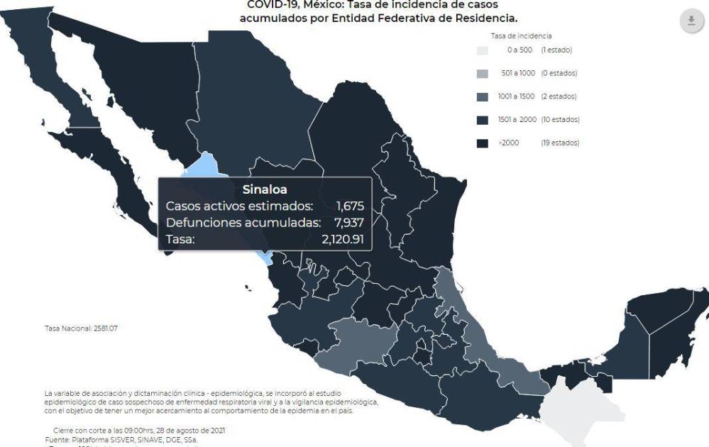 Este sábado también se sumaron a plataforma 19 nuevos decesos por Covid: Mazatlán 6, Ahome 4, Culiacán 3, Guasave 2, Sinaloa 2, El Fuerte 1 y Navolato 1.