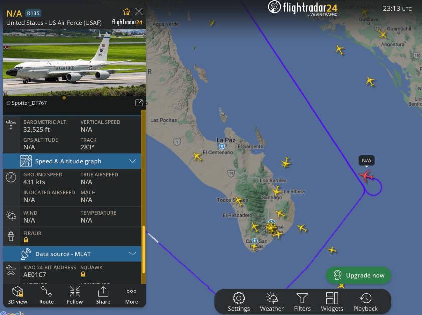 El lunes 3 de febrero, la Secretaría de la Defensa Nacional alertó en redes sociales sobre el sobrevuelo de un Boeing RC-135V Rivet Joint a las 13:41 horas, al suroeste de Cabo San Lucas, en aguas internacionales.