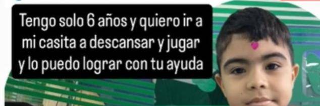 La madre del niño, Viridiana del Río, pide apoyo para que, una vez reciba las plaquetas, José Sebastián pueda volver a casa a descansar y jugar.