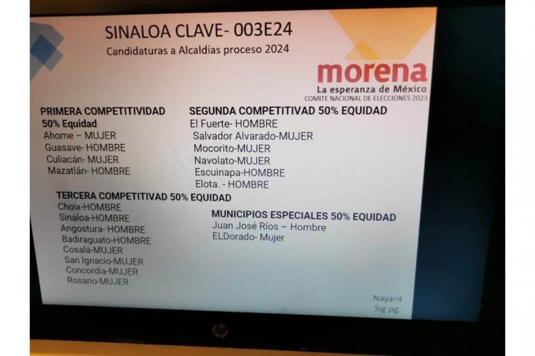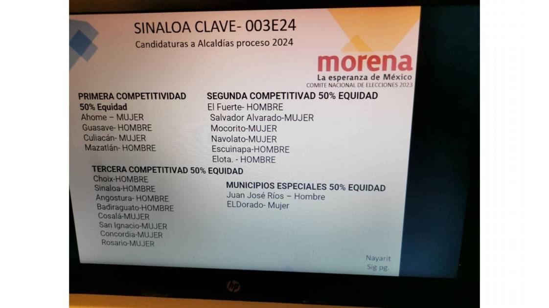Un posible escenario de asignación de candidaturas por las alcaldías de Sinaloa fue presentado en Morena Nacional.