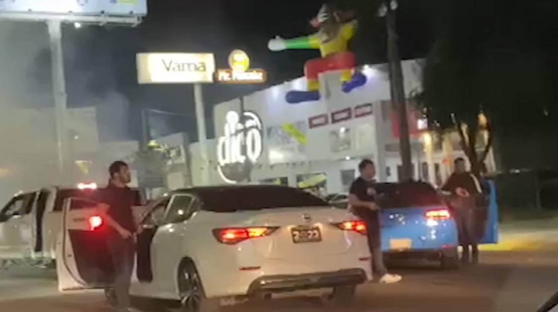 En otro video se puede observar un auto cupé azul, que es rodeado por algunos elementos de la policía estatal, en donde también se escuchan algunos gritos.