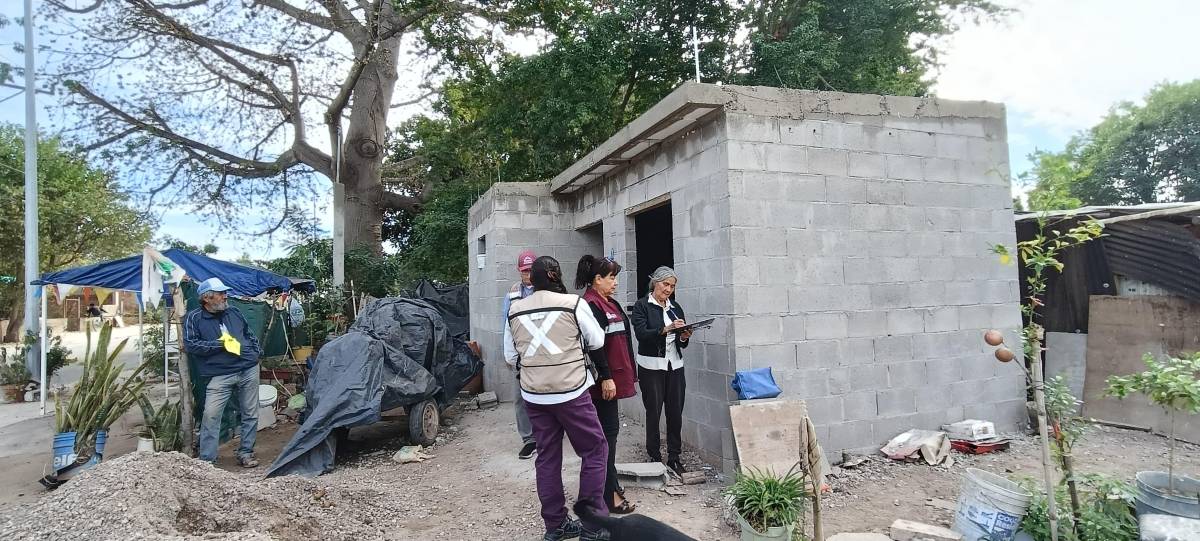 Durante el recorrido realizado este 23 de enero, personal de la dependencia, en conjunto con el Instituto Municipal de Vivienda y comités ciudadanos, evaluó el progreso de tres acciones de vivienda consistentes en la edificación de cuartos dormitorios.