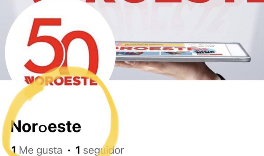 La página de Facebook de Noroeste fue falsificada en otra fanpage que utiliza el nombre Nor0este.