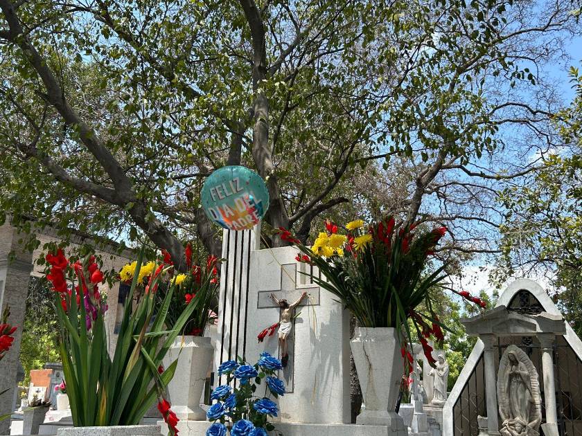 Un año después, durante el Día del Padre, Jesús barre con cuidado la tumba de su papá Salvador en el Panteón Civil de Culiacán.