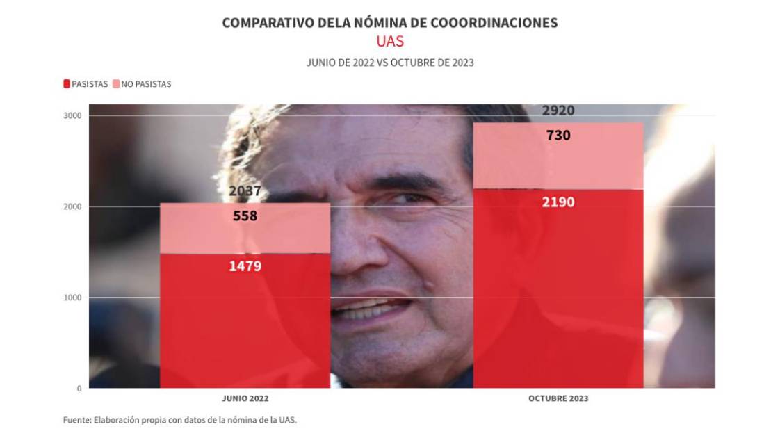 Además, el 75 por ciento de esos coordinadores se encuentran afiliados al Partido Sinaloense fundado por el ahora priista y ex Rector de la Universidad, Héctor Melesio Cuén Ojeda. Es decir, 3 de cada 4 cuatro coordinadores en la UAS son pasistas.