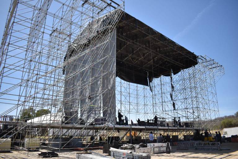 En la preparación de los conciertos que habrán ambos días a partir de las 16:00 horas, Paulo César López, coordinador de producción, detalló que para esta noche quedará listo el escenario de 43 metros de ancho y 18 de alto.