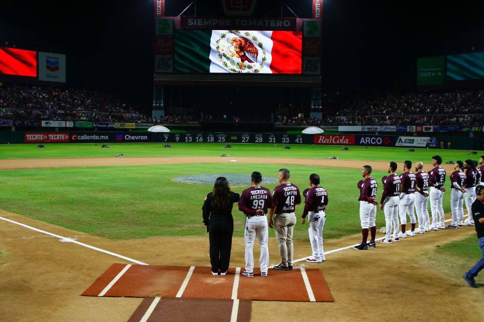 Cuando la cantante culiacanense Marilyn Chairez entonó el Himno Nacional, el emblema mexicano resonó al unísono de la boca de los aficionados en el Estadio Tomateros.