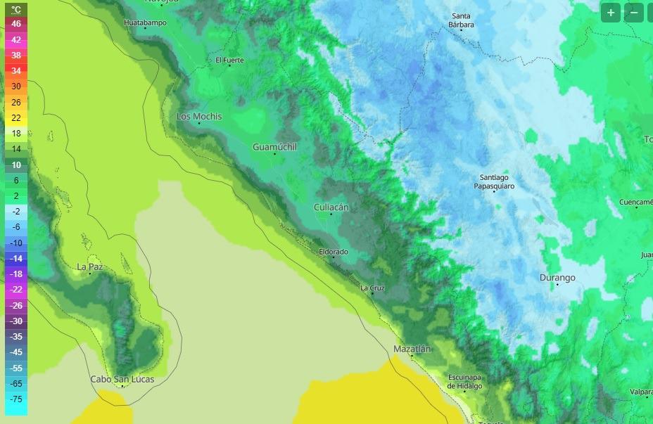 “Se espera que el efecto sea a partir del próximo domingo a miércoles esperándose mínimas para el domingo en Choix de 7 (grados centígrados), El Fuerte 6, Los Mochis 7, Ahome 8, Mochicahui 8, Juan José Ríos 8, Guasave 7, Sinaloa 6, Guamúchil 7, Angostura 6, Mocorito 5, Badiraguato 8, Pericos 4, Navolato 6, Culiacán 7, Costa Rica 7, Eldorado 7, Cosalá 12, La Cruz 9, San Ignacio 11, Mazatlán 14, Villa Unión 9, Concordia 11, Rosario 11. Escuinapa 12”, publicó Espinosa Luna en sus redes sociales.