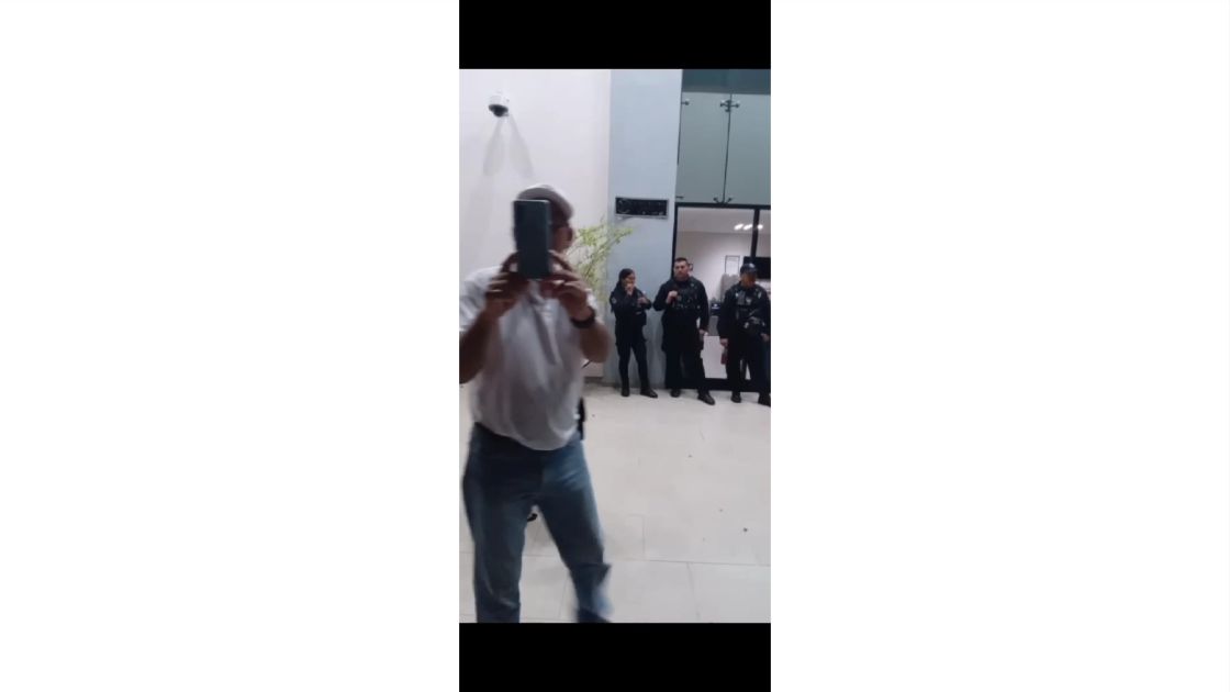 Además, a manera de amenaza, un trabajador universitario vestido con camisa y gorra blanca con el logotipo de la UAS, comenzó a interponerse en sus tomas, grabándolo con un celular e impidiendo hacer su trabajo.