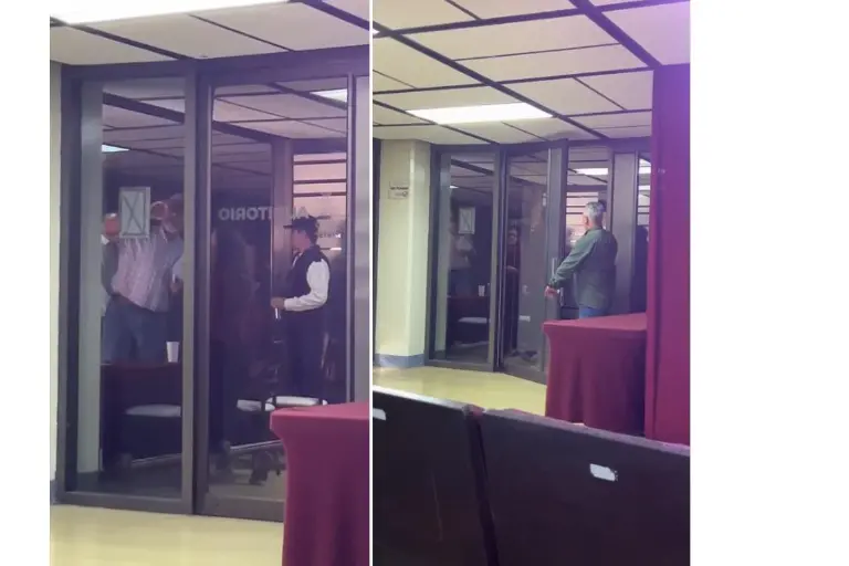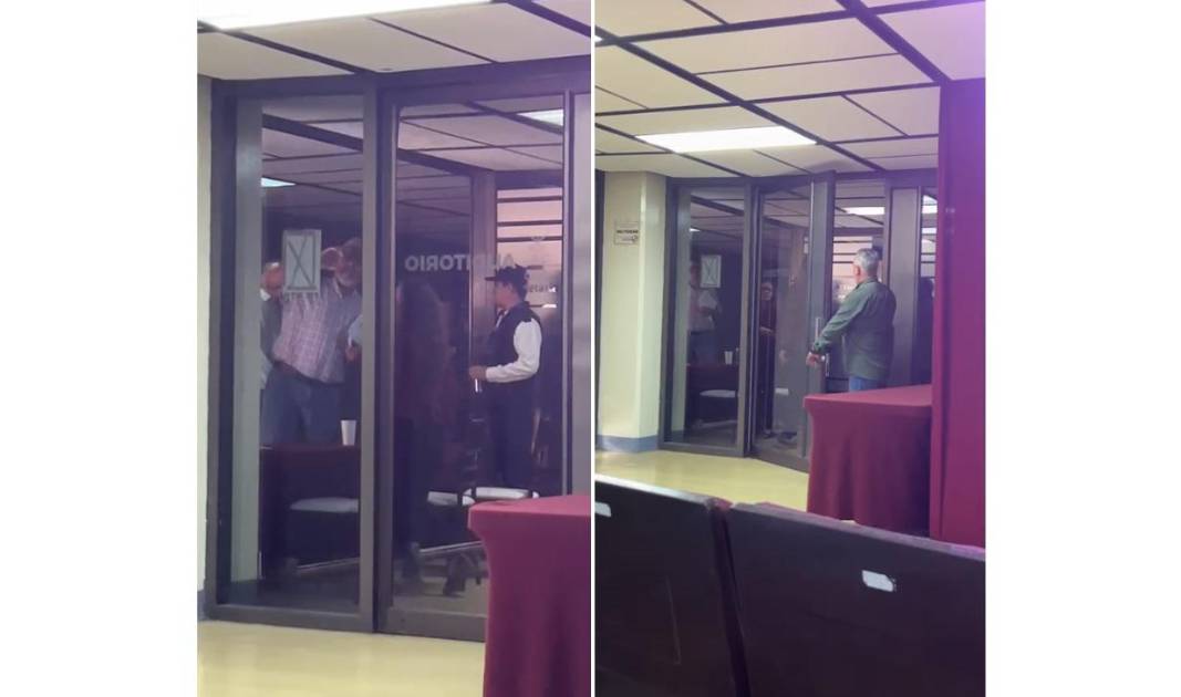 El incidente ocurrió mientras se desarrollaba la conferencia semanal del Mandatario estatal, cuando los inconformes intentaron ingresar al recinto para manifestar su inconformidad, lo que fue contenido por personal de seguridad y organización del evento.