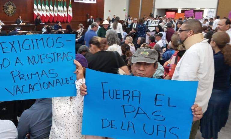 “Pago de las primas vacacionales”, “Fuera Madueña de la UAS”, “Madueña, los jubilados no somos tu botín”, “Gobierne quien gobierne los derechos se defienden”, “S no hay justicia para los jubilados, que no haya paz para el gobierno” y “Los universitarios dicen no a la reingenieria ni modificaciones al CCT”, se podía leer entre otros mensajes escritos en lonas y cartulinas llevadas por los manifestantes.