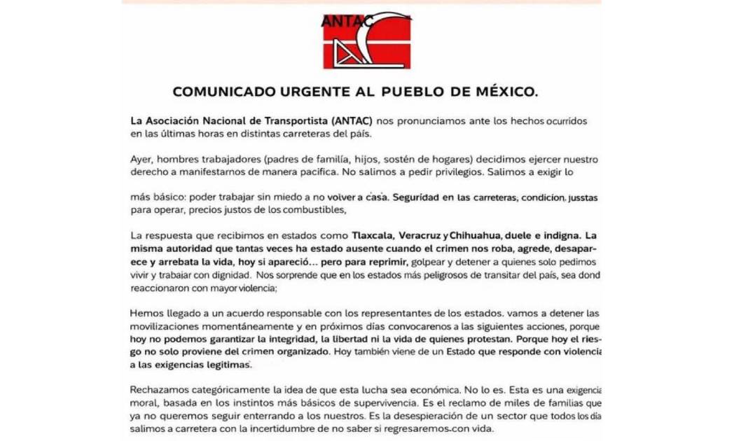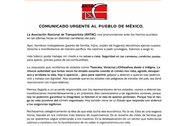 A través de un comunicado urgente firmado por su Presidente, David Esteves Gamboa, la Antac denunció que su lucha no es económica, sino una exigencia moral basada en la supervivencia.