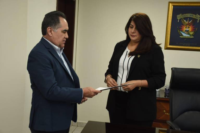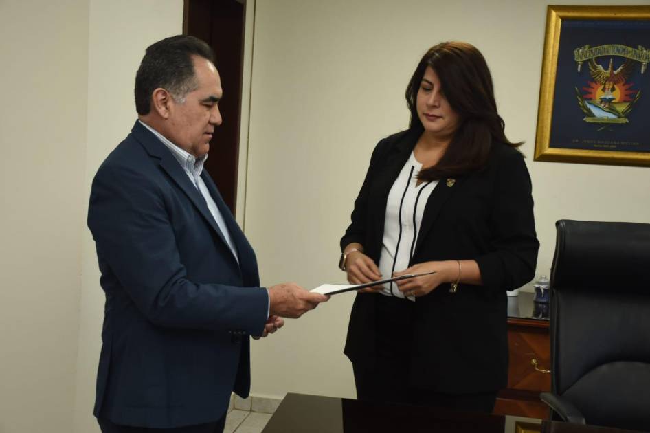 La Secretaria General y Secretaria del Consejo Universitario, Armida Llamas Estrada, firmó y selló de recibido el documento para darle el trámite, mientras que el Rector acompañado de su esposa, Sofía Angulo de Madueña, y del abogado universitario Milton Ayala Vega compartió que se encontraba contento por tener salud y estar trabajando por la Universidad.
