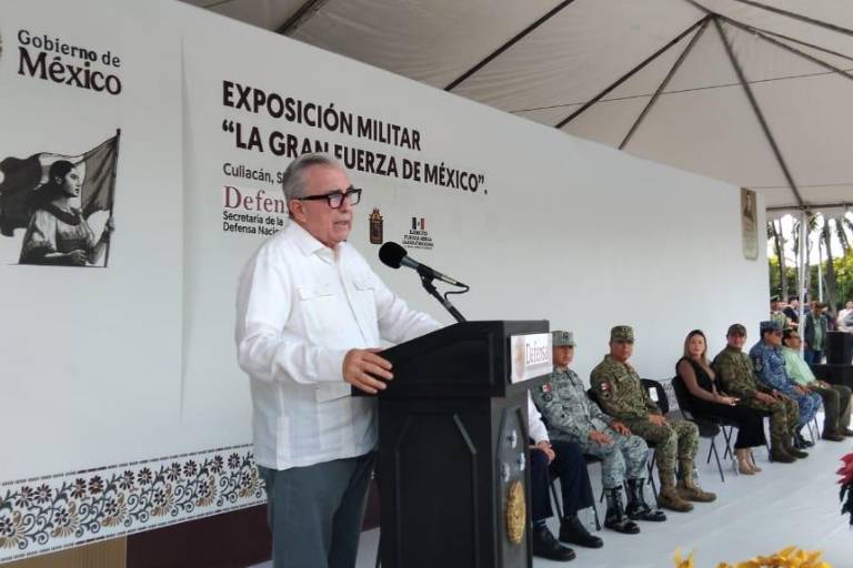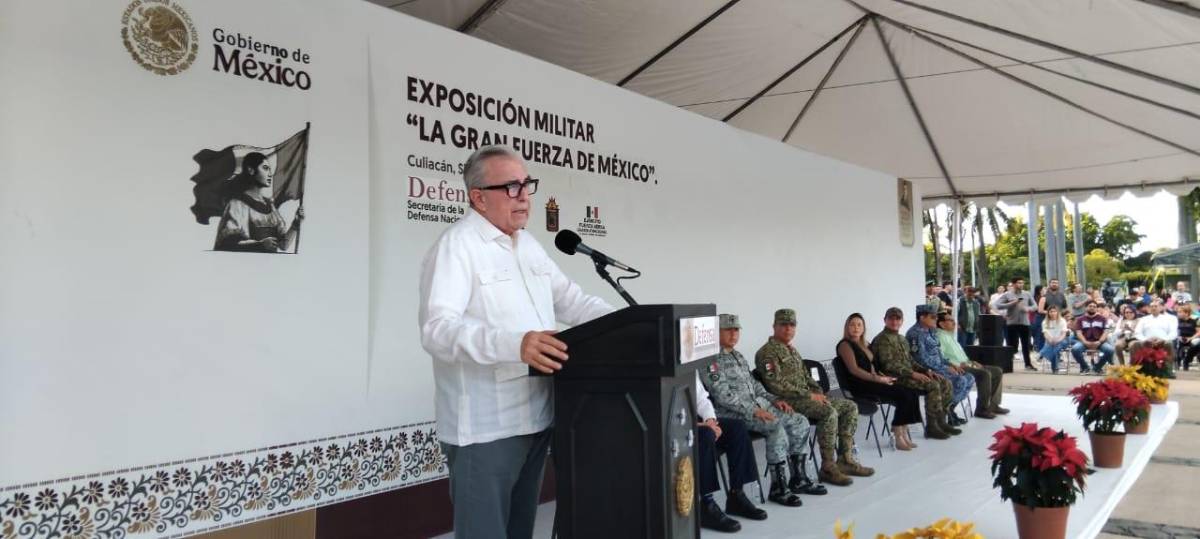 “El objetivo trazado para esta exposición militar ha sido cumplido, ya que con estas cifras, hemos logrado acercar a todos ustedes una parte del trabajo que diariamente realizan los soldados, pilotos y guardias nacionales de México en beneficio del país. Sirva esta tribuna para patentizar nuestro reconocimiento al doctor Rubén Rocha Moya, gobernador del estado, por su compromiso e invaluable apoyo”, dijo.