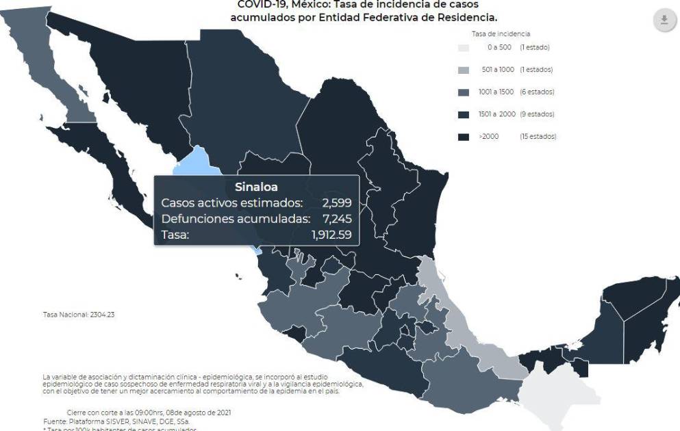 Domingo 08 de Agosto 2021 Actualización #Covid19 Sinaloa