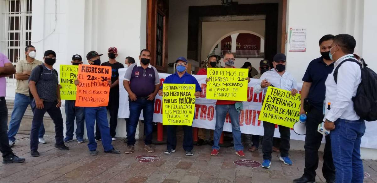 Por tercer día consecutivo, un grupo de policías jubilados se manifestó frente al Ayuntamiento de Culiacán, para exigir el pago del finiquito por su jubilación.