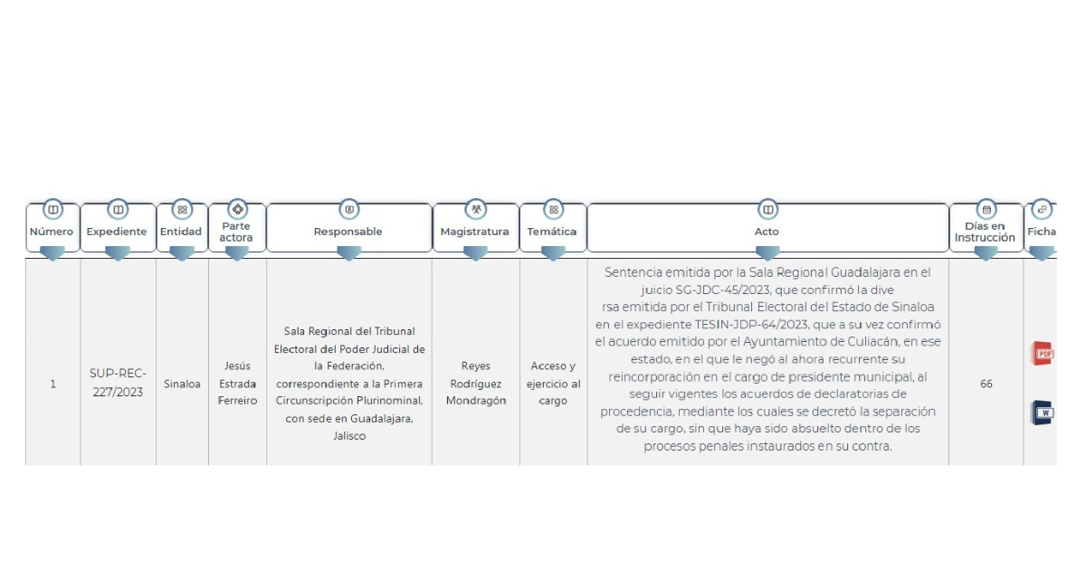 A través del proyecto SUP-REC-227/2023, se discutirá si la separación del poder contra Estrada Ferreiro a cargo del Congreso del Estado de Sinaloa estuvo dentro de lo que marca la Ley, de considerarse que no fue así, ordenarán su reinstalación inmediata.