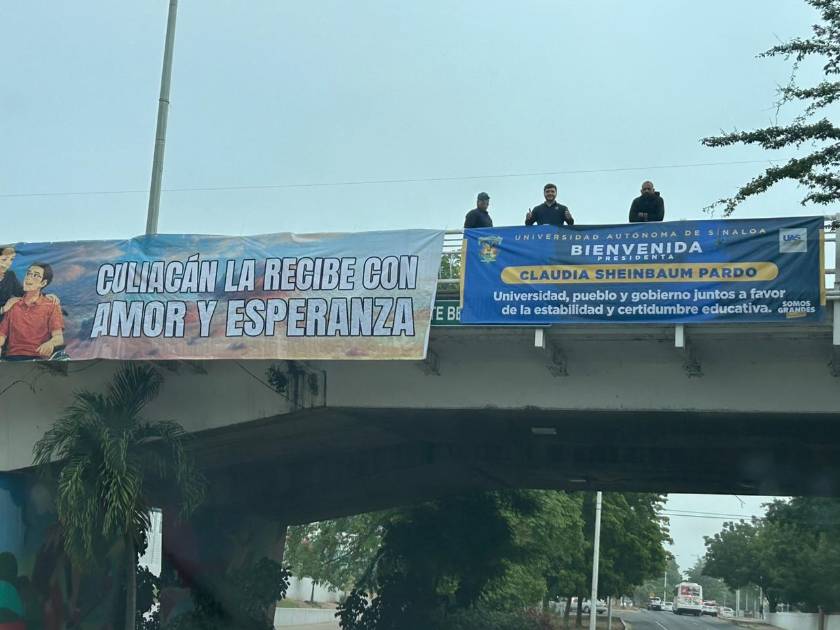 UAS coloca pancartas en apoyo a Sheinbaum durante visita a Culiacán