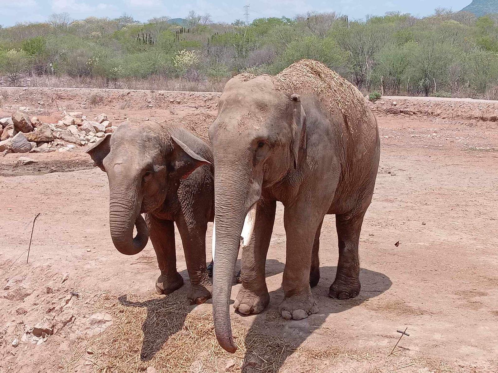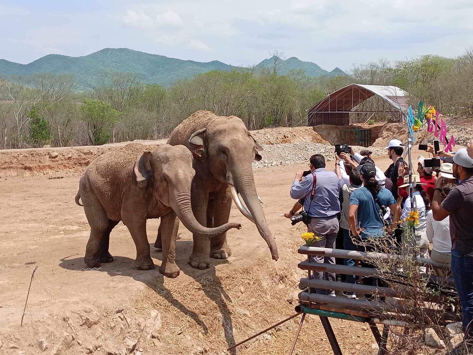 Tras contar la trayectoria de los paquidermos de 32 y 42 años antes del rescate, liberaron a los elefantes para empezar la ceremonia de unión.