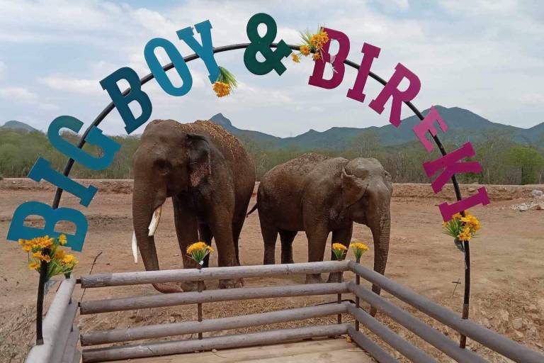 Después de medio año de la llegada de la elefanta al hogar de Big Boy, los especialistas del santuario por fin pudieron juntar a los elefantes, quienes no podían convivir anteriormente, pues no estaban acostumbrados a convivir con ejemplares de su especie.