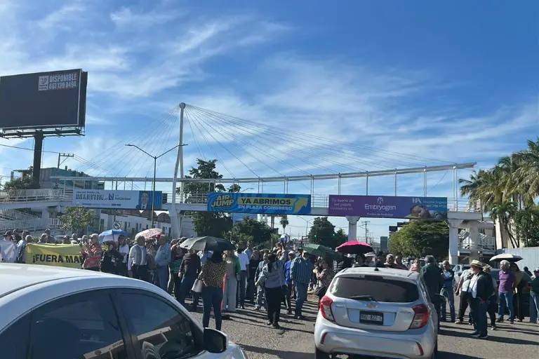 Universitarios jubilados realizaron la mañana de este martes un bloqueo parcial del Bulevar Pedro Infante, a la altura del Congreso del Estado de Sinaloa, para exigir ser atendidos por diputadas y diputados locales.