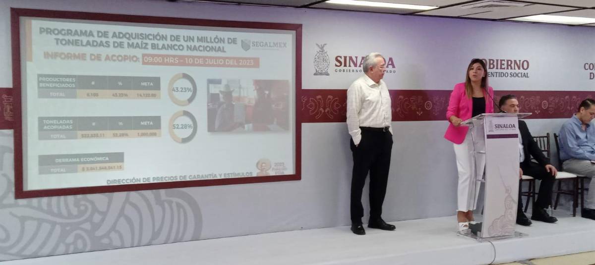 Al 50 por ciento se encuentra la compra de millón de toneladas de maíz blanco a productores pequeños por parte de Seguridad Alimentaria Mexicana, presentó la representante en Sinaloa, Ana Cristina García Almanza.