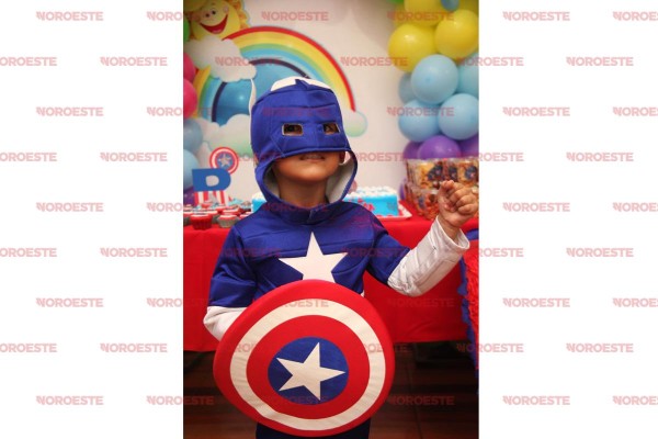 Vestido como “Capitán América” y acompañado de sus primos y amiguitos, celebró su cumpleaños número 5 Víctor Piña Toledo.