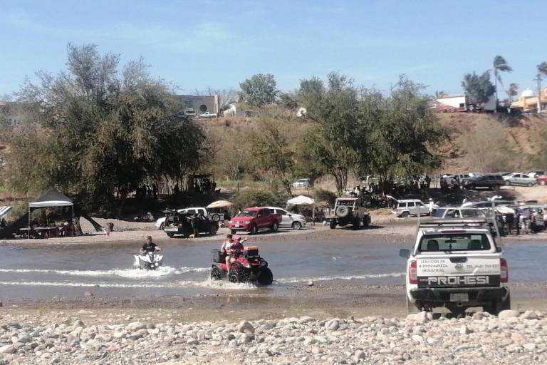 Otros tantos decidieron sacar sus cuatrimotos y razers para cruzar de una orilla a otra, mientras que otros disfrutan del templete con artistas en vivo que ameniza las tarde.