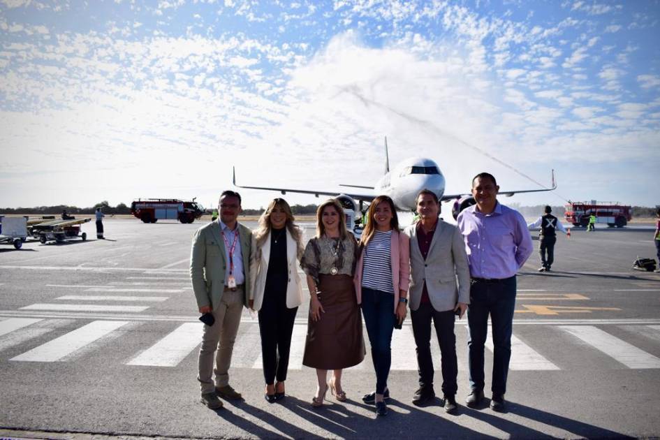 Presenciaron la llegada del primer vuelo Juan José Ruiz, director de Proyectos Especiales de Sectur Sinaloa; la Diputada Verónica Avilés Rochín y Wuascar Torres, director de Turismo zona centro, entre otros.