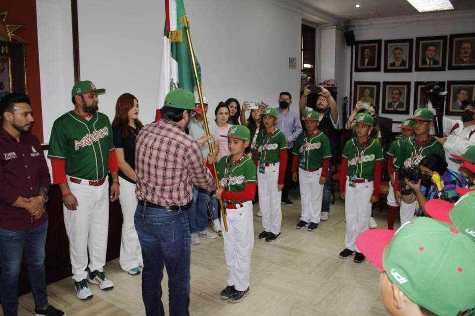 CULIACÁN._ En un acto emotivo, el Alcalde de Culiacán, Juan de Dios Gámez Mendívil, recibió en el Salón de Cabildo a la delegación mexicana de beisbol para abanderarla de cara a su participación como anfitriona en el Campeonato Panamericano de Beisbol U-10 2022, que arrancará este domingo 20 de noviembre con la presencia de cinco países.