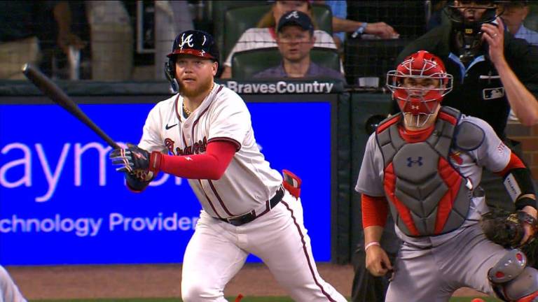ATLANTA._ Álex Verdugo rompió el empate con un jonrón de tres carreras conectado al lanzador Chris Martin en la octava entrada y el dominicano Rafael Devers aportó un cuadrangular de tres anotaciones y un total de cuatro remolcadas, para que los Boston Red Sox doblegaran el martes 10-8 a los Atlanta Braves.