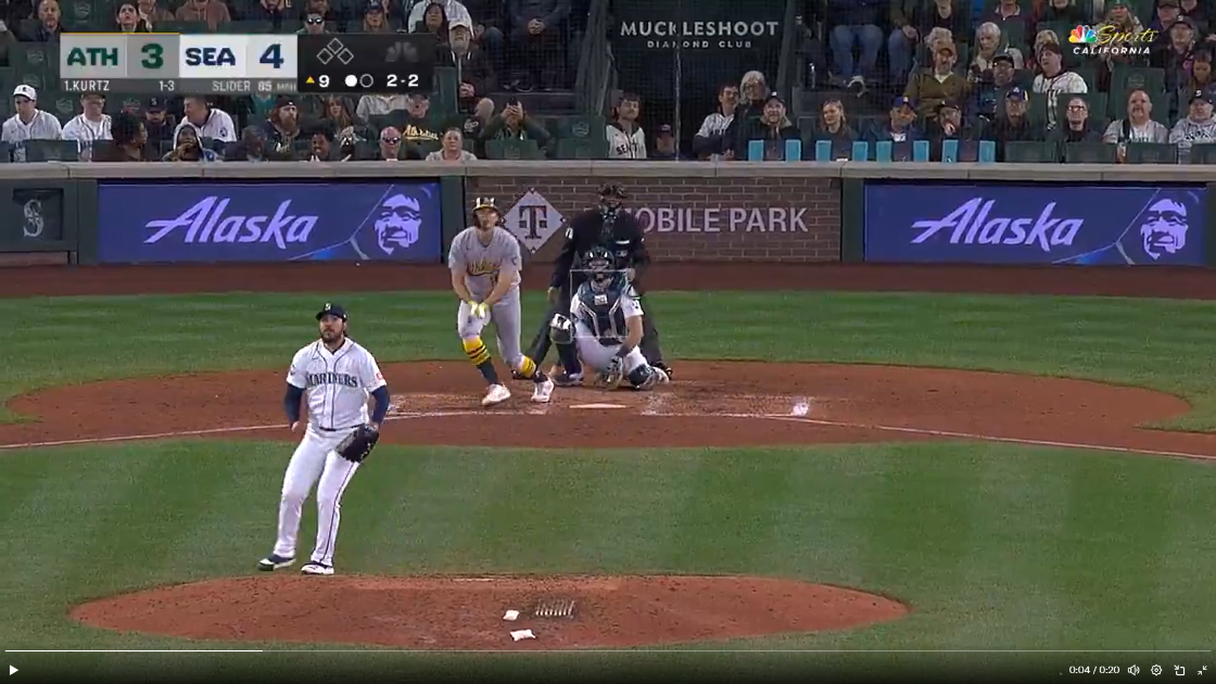 El abridor de los Marineros, Logan Gilbert, quien permitió tres carreras en cuatro entradas, consiguió una remontada del bate de Carlos Cortés alojado en su camiseta en la primera. A Cortés se le atribuyó un sencillo.