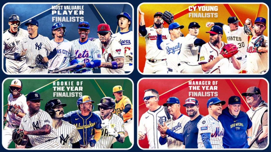 Stephen Vogt, de Cleveland, Matt Quatraro de Kansas City, y A.J. Hinch de Detroit son finalistas para el Mánager del Año en la Liga Americana. Los tres finalistas en la Liga Nacional han sido mánagers en su primer año con sus respectivos equipos: El venezolano Carlos Mendoza de los Mets, Pat Murphy de Milwaukee, y Mike Schildt de San Diego.