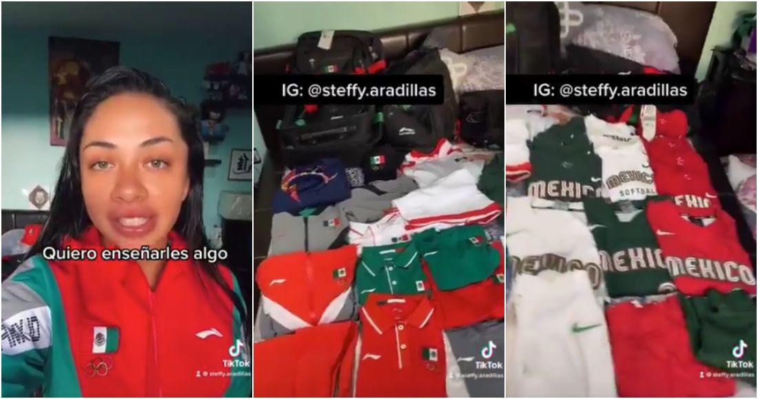 “Y antes de seguir compartiendo mi experiencia en los Juegos Olímpicos, quiero enseñarles algo... Aquí están mis uniformes, tan bonitos como siempre”, dijo la atleta en un video.