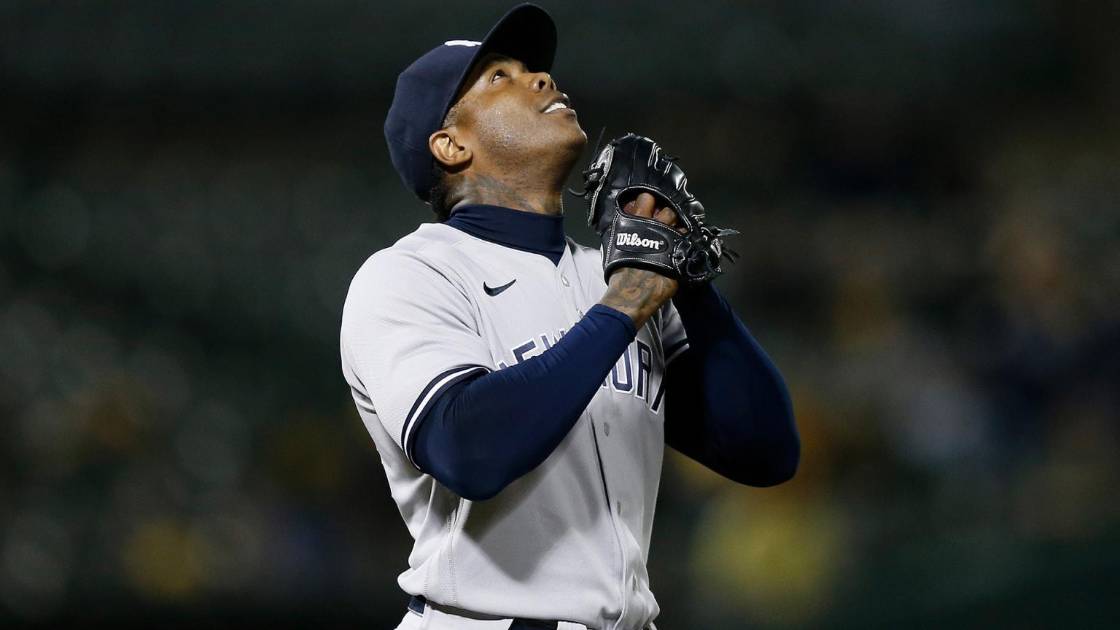 Chapman, uno de los mejores cerradores en la historia del béisbol, está teniendo posiblemente la peor temporada su carrera, con una efectividad de 3.72 (la peor suya en un año) y 25 salvados, tercero en la Liga Americana detrás de Liam Hendriks y el también cubano Raisel Iglesias. Antes del Juego de Estrellas, Chapman tenía efectividad de 4.55, pero muestra una sólida 2.20 tras la pausa.