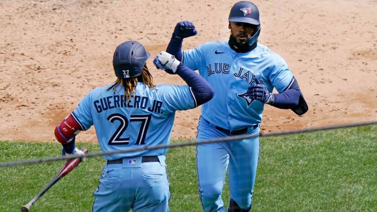 BUFFALO._ Vladimir Guerrero Jr. y Joe Panik pegaron sendos jonrones y los Azulejos de Toronto vencieron 6-2 a los Astros de Houston el sábado.