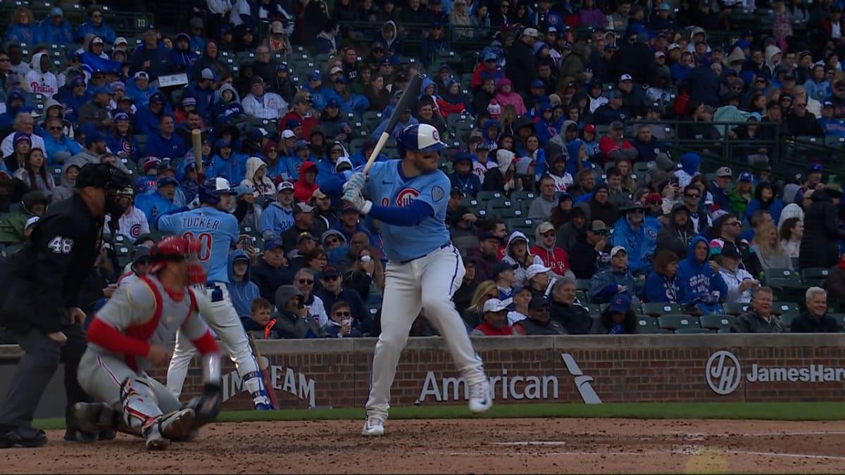 J.T. Realmuto tuvo dos de los cinco hits de los Filis, que cayeron por quinta vez consecutiva en una fría y ventosa tarde en el Wrigley Field.
