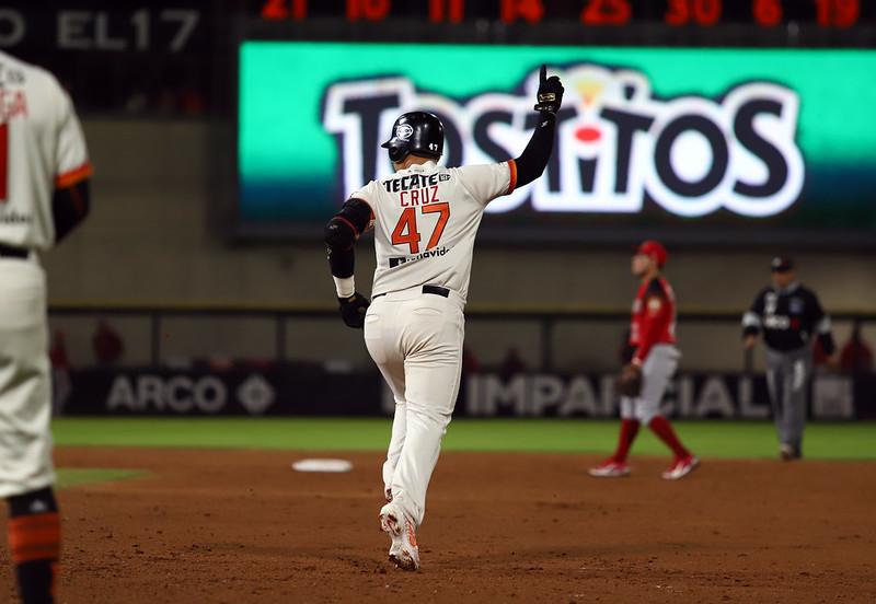 Con gran pitcheo y el batazo de Cruz, los Naranjeros igualan la serie ante Mayos