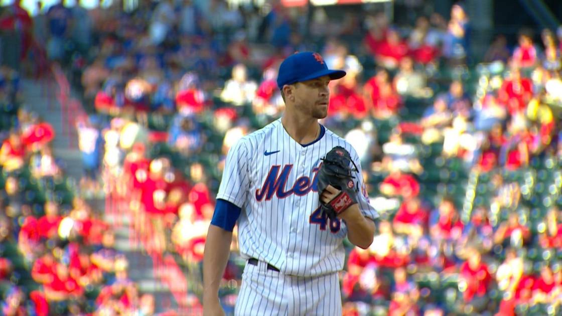deGrom, que no permitió su primer hit hasta el 6to inning, un jonrón de Dansby Swanson, ponchó a 12 y ahora tiene 18 en 10.2 innings este año y mil 523 de por vida. Se perdió toda la primera mitad de la campaña debido a una fractura no desplazada en el omóplato derecho.