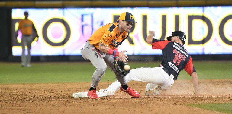 Eric Filia, con su tercer hit del juego en la séptima entrada, empujó la tercera carrera de Cañeros en los spikes de Brayan Mendoza.