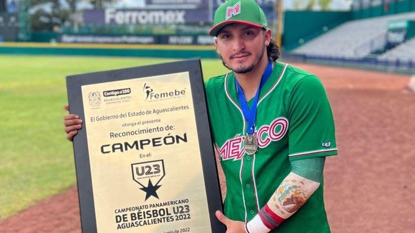 El receptor de Tomateros de Culiacán, Germán Revilla, aportó con el madero durante el Campeonato Panamericano de Beisbol Sub 23 2022, celebrado en Aguascalientes del 10 al 19 del presente mes.