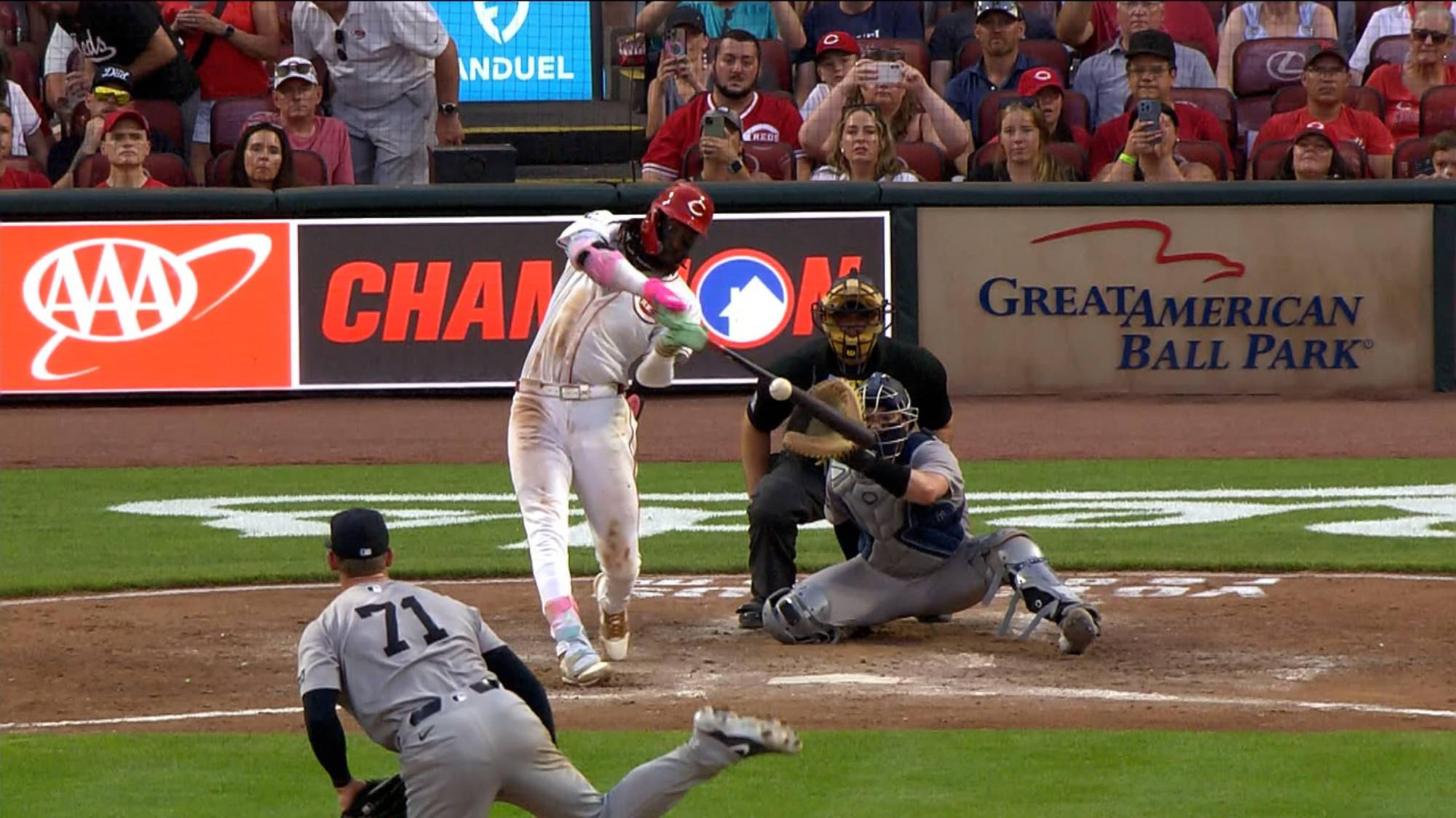 Judge rápidamente prendió la pizarra con dos outs en el primer episodio cuando dio un sendo vuelacercas hacia el segundo nivel contra el abridor Nick Lodolo. Fue lo único que concedió Lodolo, quien permitió seis imparables sin boletos otorgados y ponchó a seis, pero salió después de 4.1 capítulos con 94 pitcheos (65 strikes).